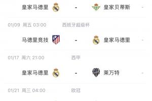 西超杯回來后皇馬要在西甲對陣萊萬特,之后1月21日皇馬對陣摩納哥,姆巴佩或許能在這場比賽中復出。