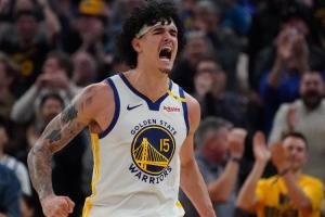 庫里三分不中,桑托斯搶到前場籃板并且救球成功!