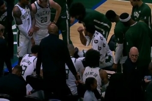 GIF-字母哥暫停期間給隊(duì)友們指導(dǎo)戰(zhàn)術(shù)