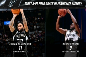 11記三分打破馬刺隊史單場三分球命中紀錄,此前由查克·珀森保持(9記)。