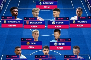體育資訊1月1日訊 2025年已經過去,《轉會市場》也統計了本年度身價下跌最多的一套陣容,巴薩、阿森納、曼城、皇馬各2將。