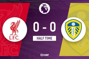 上半場補時2分鐘,利物浦0-0利茲聯。