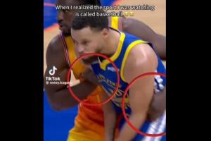 GIF-庫(kù)里被連拉帶拽 跑到底角還被一屁股拱倒 裁判沒(méi)有任何表示