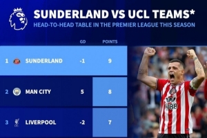 體育資訊1月2日訊 英超已經(jīng)進(jìn)行了19輪,《轉(zhuǎn)會(huì)市場(chǎng)》統(tǒng)計(jì)了本賽季至今英超聯(lián)賽對(duì)陣上賽季歐冠區(qū)球隊(duì)的拿分情況,升班馬桑德蘭9分最高。