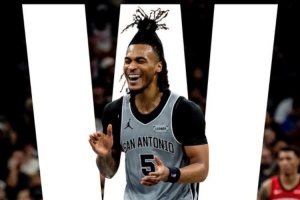 比賽結束后,馬刺官推曬出了本場比賽的贏球海報,卡斯爾登上封面。