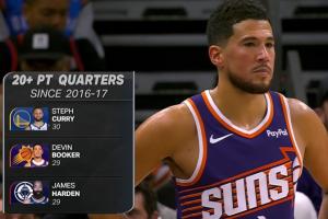 自16-17賽季以來,單節20+次數前三: