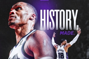 威少得到17分,常規(guī)賽生涯總得分超越奧斯卡·羅伯特森,加冕NBA歷史控衛(wèi)得分王。