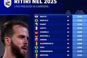 體育資訊1月3日訊 德國轉會市場統計了2025年退役球員的歷史最高身價,并列出榜單,拉基蒂奇、馬塞洛、皮亞尼奇、烏姆蒂蒂7000萬歐居首。