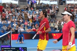 體育資訊1月3日訊 網(wǎng)球聯(lián)合杯悉尼賽區(qū)B組混雙決勝,朱琳/張之臻在決勝盤搶十,以2-1逆轉(zhuǎn)梅爾滕斯/貝爾赫斯,中國隊大比分2-1擊敗比利時隊,小組首戰(zhàn)告捷。