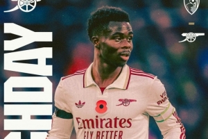 阿森納官方社媒發布了為此役制作的海報,隊內邊鋒薩卡單人出鏡。