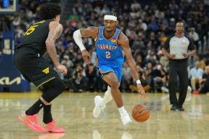 賽季前35場比賽,雷霆的戰績是30勝5負;作為對比,73勝勇士(2015-16賽季)當賽季前35場比賽33勝2負。