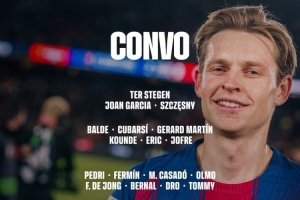 體育資訊1月3日訊 北京時(shí)間明天凌晨4點(diǎn),巴薩將在西甲第18輪比賽中客場(chǎng)對(duì)陣西班牙人。巴薩公布了此役的球員名單。佩德里、奧爾莫在列,阿勞霍繼續(xù)缺席。