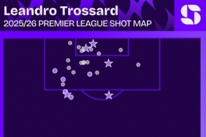 數(shù)據(jù)統(tǒng)計(jì)顯示,特羅薩德本賽季在英超共計(jì)27次射門、10次射正打進(jìn)5球,并列同期隊(duì)內(nèi)最多。