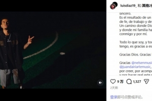 體育資訊1月3日訊 拜仁球星路易斯·迪亞斯不僅有著出色的進球能力,哥倫比亞人也是一位音樂愛好者。在新年來臨之際,迪亞斯在INS上發(fā)布了一段音樂視頻。特別之處在于,這是他個人第一首單曲的官方MV!