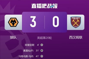 體育資訊1月4日訊 英超第20輪,狼隊(duì)主場(chǎng)3-0擊敗西漢姆聯(lián),獲本賽季聯(lián)賽首勝。