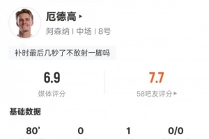 體育資訊1月4日訊 英超第20輪,阿森納客戰(zhàn)伯恩茅斯。厄德高首發(fā)出戰(zhàn),送出1次助攻,1次關鍵傳球,還有3次搶斷,評分6.9。
