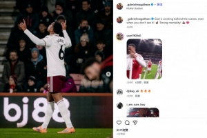 他也在賽后通過社媒曬出自己進球后的慶祝照并配文:“即使你并未目睹,上帝也在幕后默默工作!??? (我們有著)強大的心態!??????”