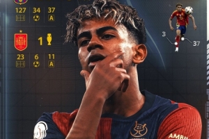 據西班牙媒體《世界體育報》統計,18歲亞馬爾達成職業生涯150場比賽里程碑,其中巴薩127場34球37助,西班牙隊23場6球11助。