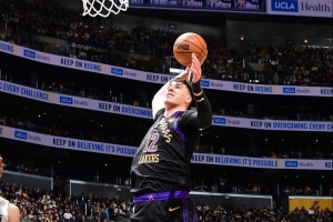 詹姆斯轉發了隊友杰克·拉拉維亞在昨日比賽中接到他助攻的快攻扣籃片段,并評論道:“杰克??羅伯茨(注:職業摔跤選手)????起飛了”