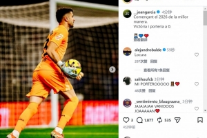 霍安·加西亞社媒曬出比賽照片,慶祝球隊取勝,他寫道:“以最好的方式開啟2026年,勝利+零封。”