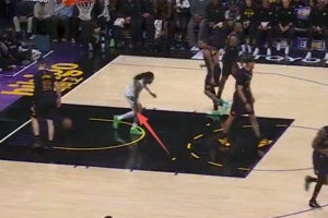 莫蘭特在昨天對陣湖人的一個回合中突破上籃,落地后腿部明顯有不適,他也用手摸了摸自己的小腿。
