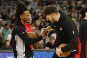 賽前,馬刺后衛卡斯爾和開拓者內線克林根被拍到在場邊嬉戲玩耍。
