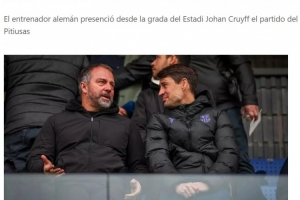 體育資訊1月4日訊 西班牙《每日體育報》報道,當地時間周日,巴薩主帥弗里克趁著一線隊休假的空檔與巴薩體育副主管博揚一同前往約翰·克魯伊夫球場,現場觀看了西協乙巴薩競技隊(巴薩B隊)4-0大勝伊比薩島的比賽。