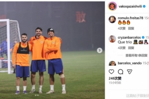 體育資訊11月1日訊 在個人社媒,泰山外援瓦科-卡扎伊什維利曬出與澤卡、克雷桑的合影。