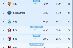 朗斯積40分排名法甲榜首,巴黎圣日耳曼積39分位居次席,據Opta統計,同一個賽季兩支球隊17輪過后積分39+,本世紀法甲第三次出現這樣的情況,此前兩次是2016-2017賽季、2022-2023賽季。