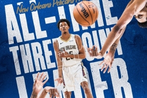 鵜鶘官方曬出照片,祝賀墨菲登頂隊史三分命中數第一的寶座!榜單具體如下: