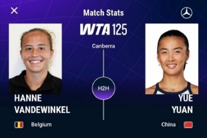 體育資訊1月5日訊 WTA125堪培拉站女單首輪,袁悅6-3/6-4戰(zhàn)勝范德溫克爾[8],取得2026年開門紅,順利晉級下一輪。