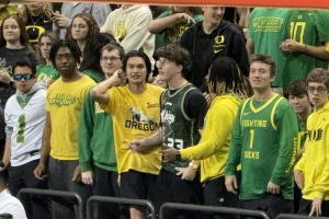 今日俄勒岡大學以67-63戰勝萊斯大學,取得開季兩連勝,小吧來到現場觀戰,看到現場有很多林葳的球迷,一個外國人還穿著同曦球衣。
