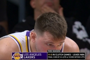 本賽季出現關鍵時刻(最后5分鐘分差5分以內)的比賽,湖人此前11勝0負,今天再度進入關鍵時刻。