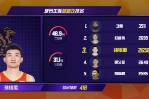 ??1月4日,2025-2026賽季CBA常規賽第10輪戰罷,本輪國內球員在組織端集體爆發,3位球員送出單場11次助攻。其中,浙江方興渡隊后衛孫銘徽單場送出11次助攻,生涯總助攻數升至歷史第三位,解鎖重要里程碑。