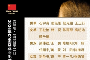 體育資訊1月5日訊 2026年馬來西亞羽毛球公開賽將于1月6日至11日在吉隆坡舉行,今日中國羽毛球隊公布參賽名單。石宇奇、陳雨菲、鳳凰組合領銜。
