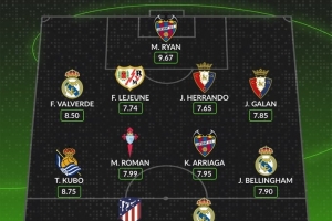 中場:久保建英(皇家社會,8.75分)、米格爾·羅曼(塞爾塔,7.99分)、凱文·阿里亞加(萊萬特,7.95分)、裘德·貝林厄姆(皇家馬德里,7.90分)