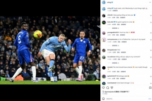 哈蘭德在社媒曬出本場射門照片,配文寫道:“艱難的一周已經過去,讓我們在周中的比賽重回正軌。”