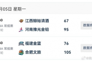 福建金籃 76-105 合肥文旅,戴蒙德-約翰遜21分,杰米-納雷德17分7籃板,王澤11分,菲利皮娜-卡耶10分11籃板收獲兩雙,劉汐玥10分。福建女籃楊蕊18分,徐婷婷12分,林心怡11分。