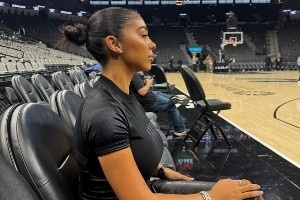 體育資訊1月6日訊 索漢的女友Mya Mills更新社媒,曬出了她觀看馬刺上一場對陣開拓者的比賽的動態。