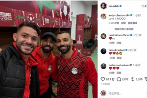薩拉赫賽后社媒曬出與隊內另外兩位進球者易卜拉欣、阿提亞的合照,慶祝球隊晉級非洲杯8強。