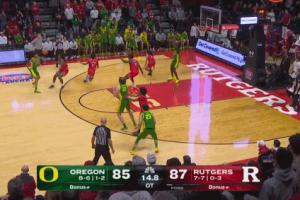 羅格斯大學(xué)兩罰一中之后,落后三分的俄勒岡最后一攻,林葳運(yùn)過(guò)來(lái),還是給了比特,比特再傳林葳,林葳再傳,時(shí)間不夠了…