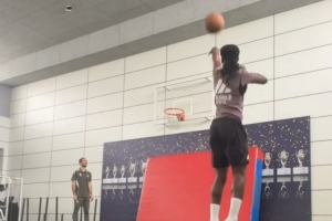 卡馬文加秀籃球技術,連續4次遠投命中,彈無虛發,他在社交媒體上曬出視頻,配文:“我來了啊哈哈!”