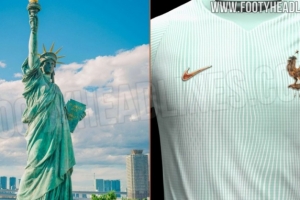 體育資訊1月6日訊 足球裝備網站footyheadline曝光法國隊世界杯客場球衣,這件球衣設計靈感來源于自由女神像。