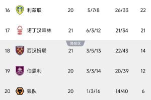 體育資訊01月07日訊 英超第21輪先賽一場,西漢姆聯1-2不敵諾丁漢森林,落后安全區已經7分。