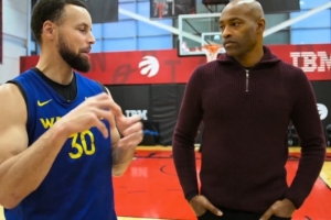 體育資訊1月7日訊 近日,勇士球星斯蒂芬·庫里在訓(xùn)練中和文斯·卡特聊天。