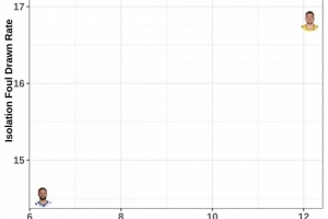 橫坐標:帶球造犯規(guī)率。庫里約6%,亞歷山大約9%,東契奇約12%