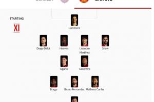 曼聯(lián)首發(fā):31-拉門斯;23-盧克·肖、6-利桑德羅·馬丁內(nèi)斯、26-海文、2-達洛特;18-卡塞米羅、25-烏加特、8-B費;13-多爾古、10-庫尼亞、30-舍什科