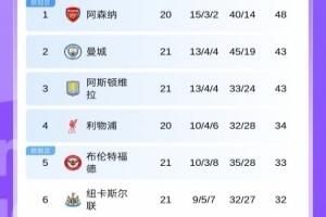 體育資訊1月8日訊 英超第21輪結束多場對陣,最新積分榜情況如上圖。
