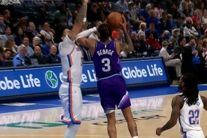 GIF-基昂特·喬治突破飛身放籃打成2+1 雷霆挑戰(zhàn)成功改判進(jìn)攻犯規(guī)