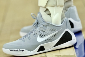 勇士球星庫里今天上腳的是科比 9S戰靴,灰白黑的配色簡潔低調。